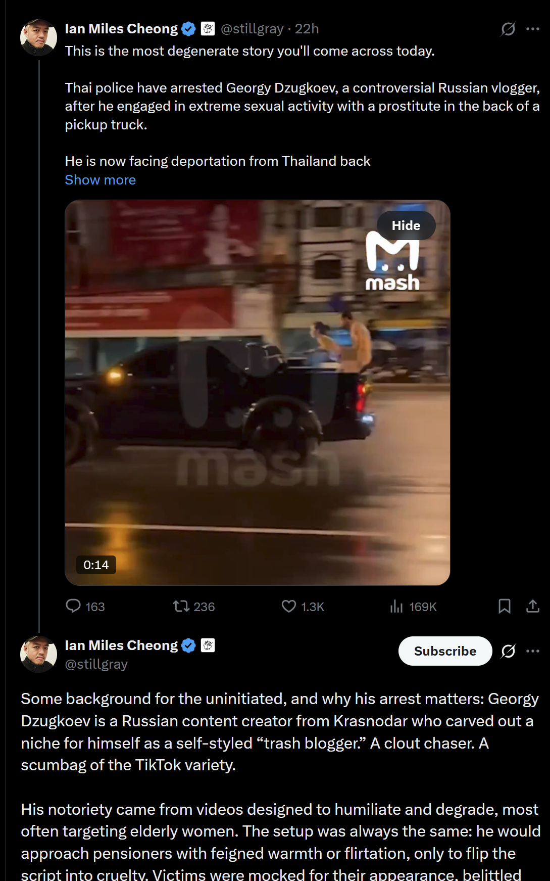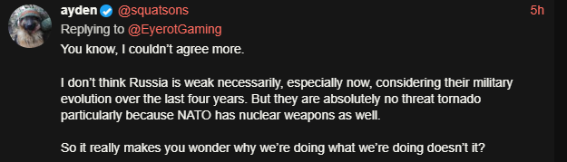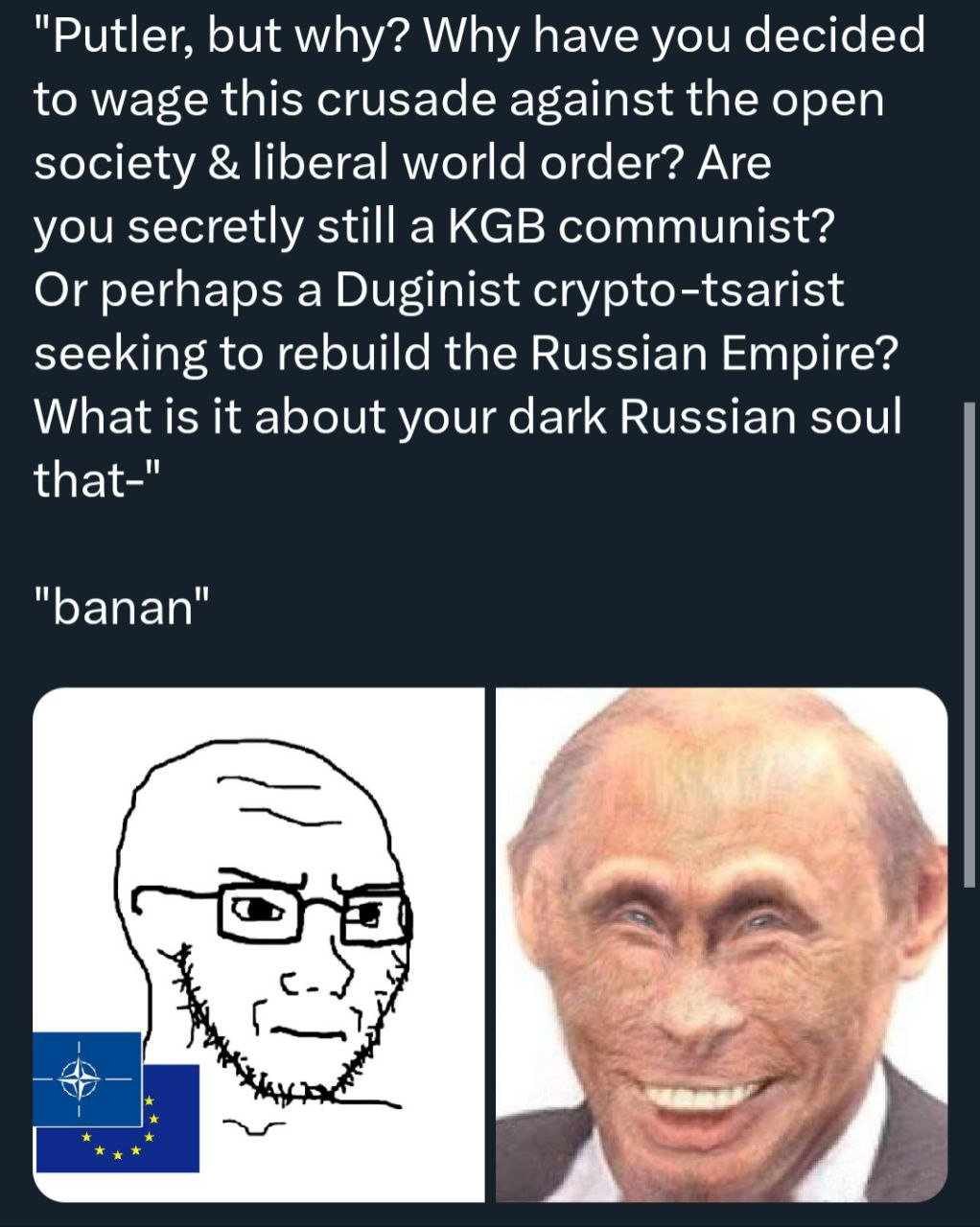 Don’t take it so seriously. It’s just seething Ukraine-Stan man, cucktinistas, and Intbriganon/Champsocanon/tankanon trying to post good.