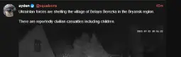 >only against Ukraine.So if you're willing to stretch definitions of belligerents then Ukraine appears to be holding a front against Russia, China, and North Korea combined. Not bad for a so-called made-up country with no national identity or language whose army was meant to shatter within hours on the first day of the war.