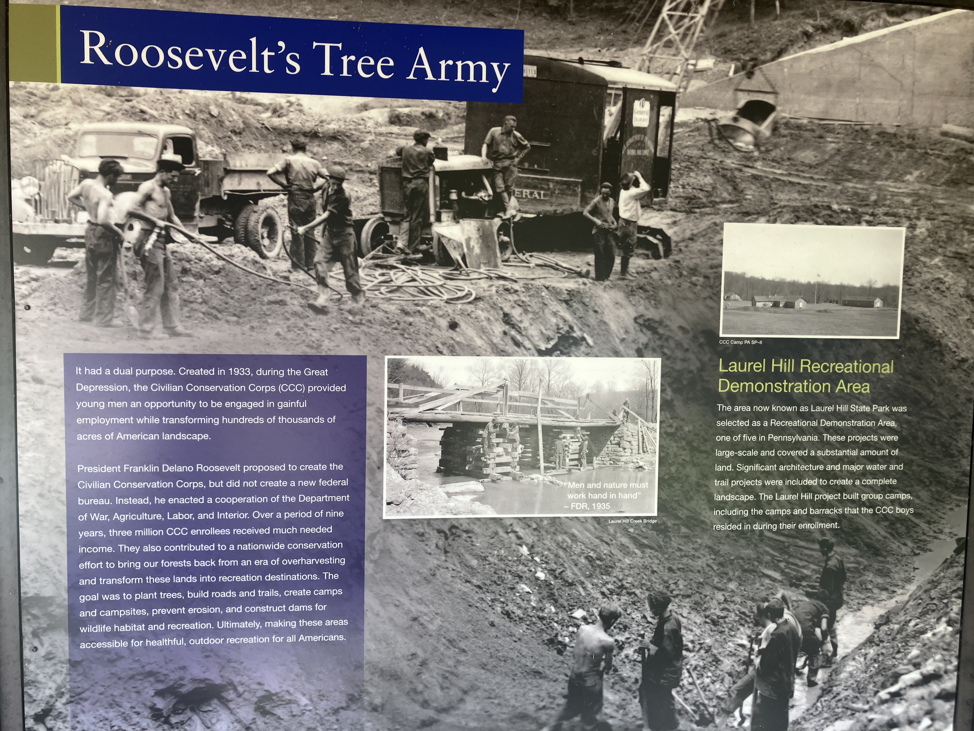 The other day I visited Laurel Hill State Park in Pennsylvania and I saw a placard and a statue commemorating the Civilian Conservation Corps which was a federal jobs program during the Great Depression. Young men who were poor were payed to replant a forest after it was cut down, they also built bridges across creeks for hikers. If a politician tried to do this today everyone would call them a communist and they would get kicked out of the DNC. Why can’t we do something like this again, wouldn’t a federal jobs program were people do stuff like planting trees, picking up litter, providing disaster relief, or doing food drives help decrease unemployment? Yes it would but that would harm the prophets of the ruling class. Federal jobs programs like this along with the rest of the New Deal is what ended the Great Depression and no schools teach that, at school you are taught the narrative that WW2 somehow ended the great depression “so the more you bomb Yemen the better the economy” which is bullshit. FDR was a lib but he did the right thing by doing the New-Deal, I thought I was in the USSR by how proletarian that statue looks.