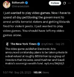 American fascists literally say things like "I just wanted to play video games, but now you're making me kill the transhumanists and brownoids"