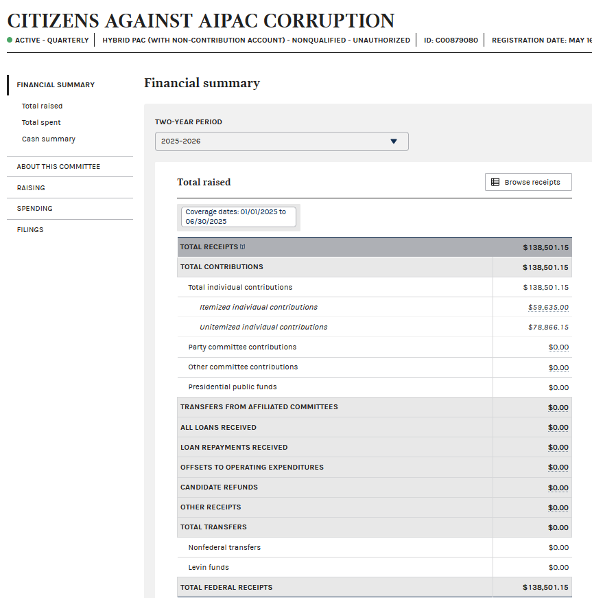 https://www.fec.gov/data/committee/C00879080/On their website and twitter they also promote pro-Israel candidates like AOC as well.