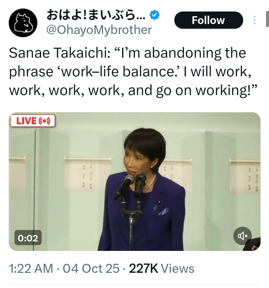 She's also in love with the idea of war with China of course. There was one anon here who was adamant that Ishiba would be pushing for a Japan able to detach from its absolute dependence on the US and work more with China, but like the typical centrist he is, he just resigned to give way to this freak lmfao.