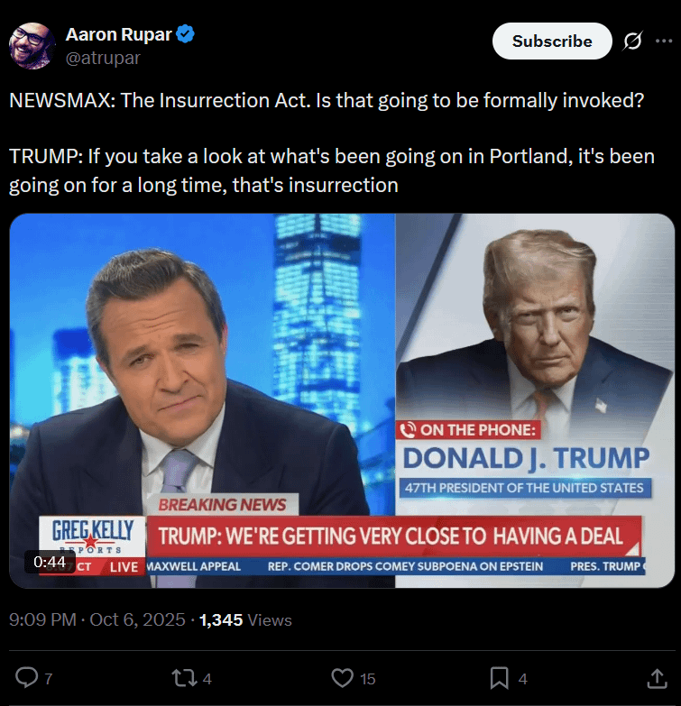Anyways what's the over under on the invocation of the Insurrection Act to fight the dastardly antifa aligned Portland cops this week? I give it a light to decent 40%