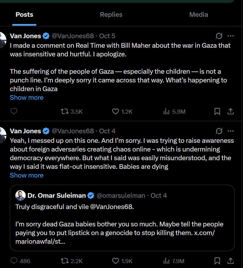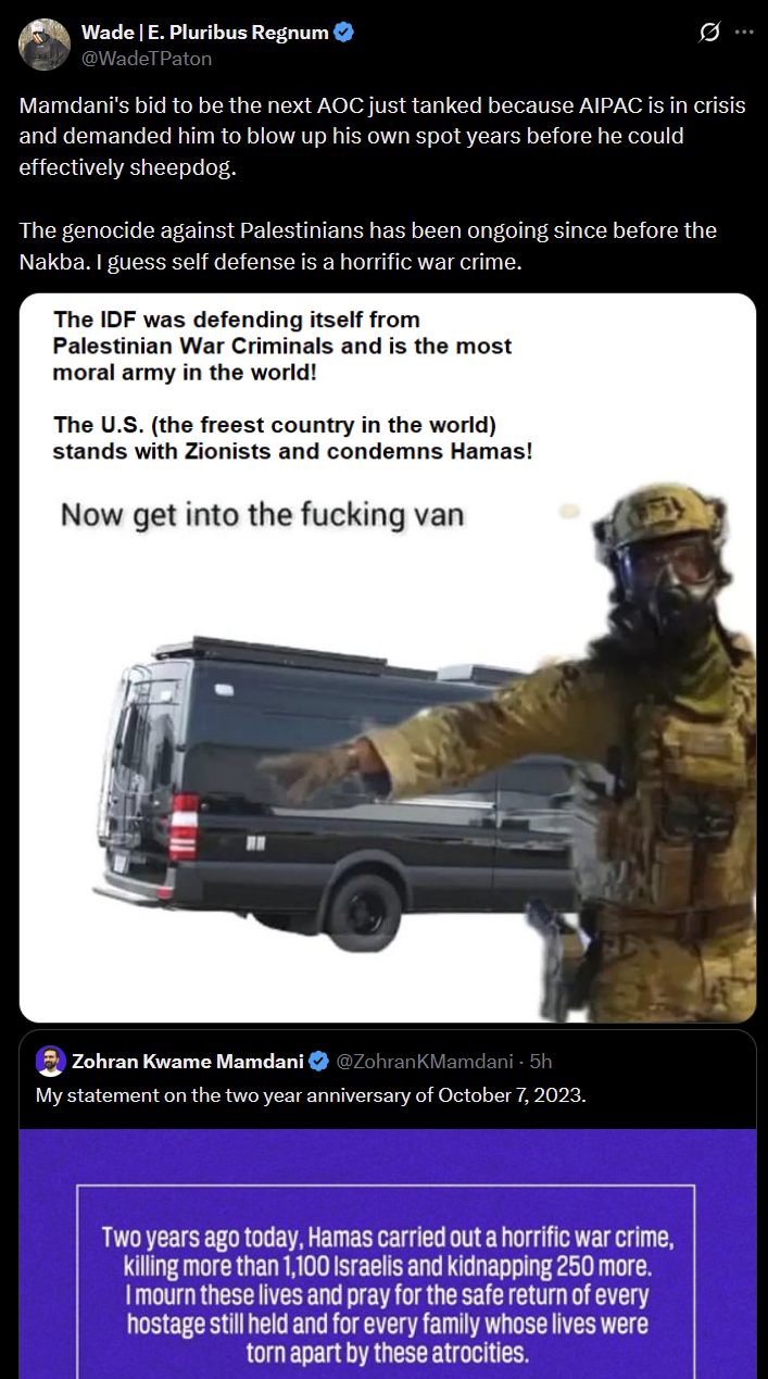 Let's see if he'll drop that post talking about the ICE stuff he was mad nobody was talking about and the posts about Israel stopped him from posting.