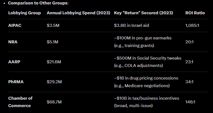 OP, care to prove how much more powerful AIPAC is compared to every other lobbyist group?