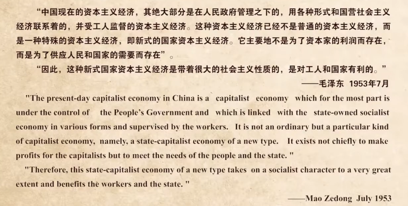 literally "people's companies" vs "individual's companies" >>2515727Wrong. China is Communist. Only sinophobic anti-Communist say otherwise. In Communist China, the transition from state-capitalism to socialism was completed by 1956. By 1981, the exploiting class was eliminated.