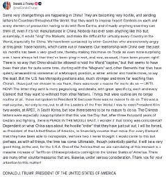 They did this in advance of Trump-Xi meeting in few weeks. At first I thought Americans would shut the fuck up and keep their heads down. Say nothing and beg for forgiveness when they meet. But no. Orange retard isn't that smart and is now threatening to not even meet Xi lol. A strongman bluff, hoping China takes this down. One problem though, China doesn't need to talk with him. Trump has no cards.