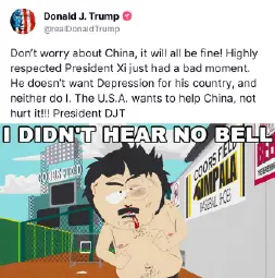 Americans threatened to kick China in the balls for years. When they finally mustered the courage to do it, China pulled out a shotgun and blew America's legs off.