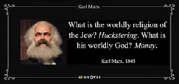>What is the secular basis of Judaism? Practical need, self-interest. What is the worldly religion of the Jew? Huckstering. What is his worldly God? Money.