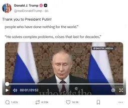>DONALD J. TRUMP, PRESIDENT OF THE UNITED STATES OF AMERICA >>2516538>They are becoming very hostileWell, gee, I wonder why they'd become hostile to the US and EU all of a sudden, and for no real reason.