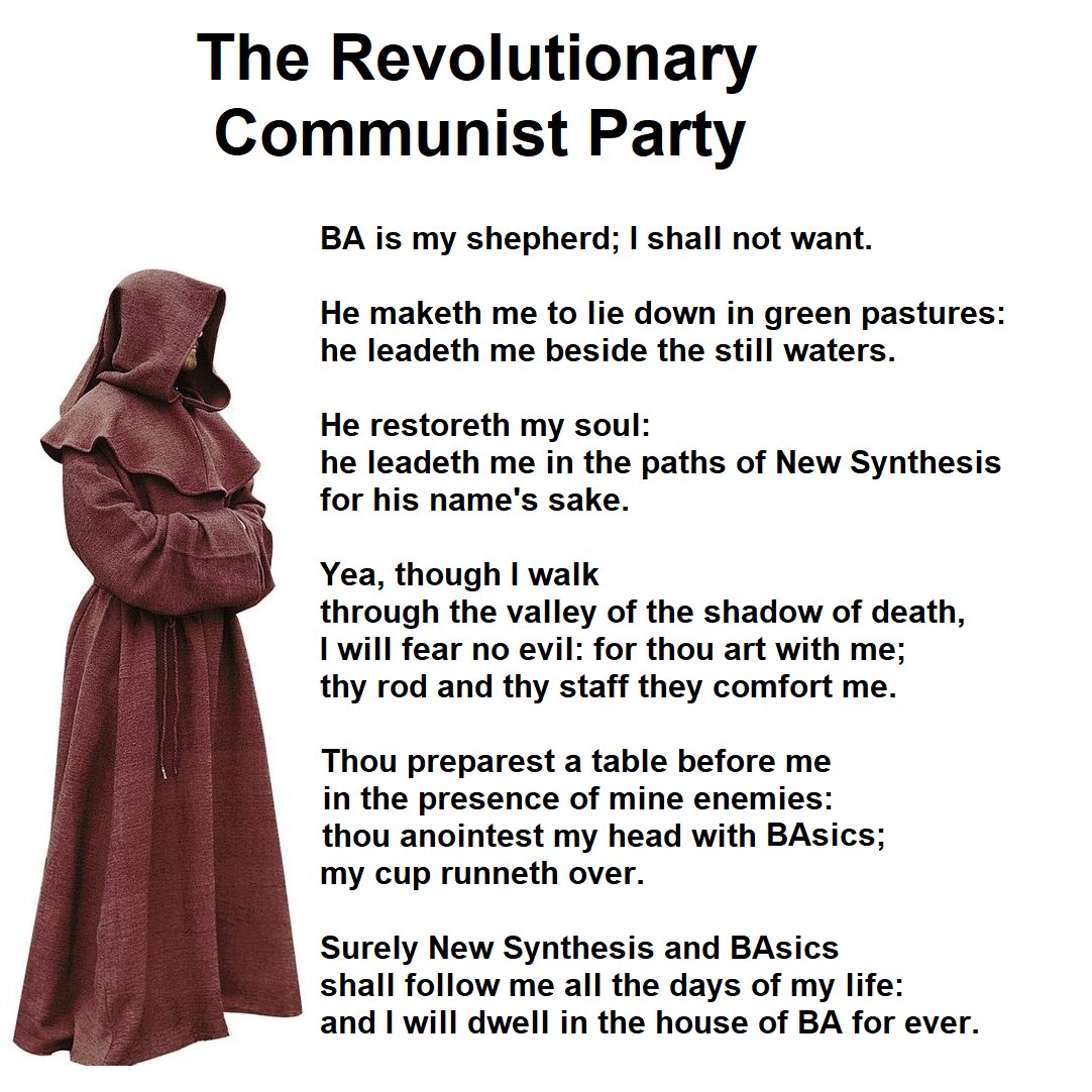 >>2515073>My bro said he used to see them all the time at UCLA when he was going there over a decade ago. He said he tried talking to them but got quickly weirded out by their culty Bob Avakian worship. I've been to one of their bookstores. They were nice, very friendly like Mormons. But obviously, a cult and I didn't give them my phone number (they asked). I thought it was amusing that they had inserted copies of Avakian's books into random sections in the bookstore. Like scanning through the history section and there would be a copy of the BAsics in there, like they were hoping people would stumble across it. This was in addition to a section dedicated to his works. It was like they were doing entryism inside their own bookstore.