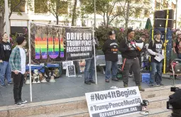 https://en.wikipedia.org/wiki/Refuse_Fascism>Refuse Fascism was formed by a broad ad-hoc coalition of leftists, liberals, intellectuals, artists, and activists including members of the Revolutionary Communist Party (RCP), after the 2016 election.[1] The RCP has said they issued the call to action which launched the group.[2] Responding to the call, an emergency meeting which officially launched the group was convened at the Great Hall at Cooper Union in New York City, featuring speeches from Sunsara Taylor, Immortal Technique, PZ Myers, Carl Dix, and Jeremy Scahill, among others. Statements of support were sent from Gloria Steinem and Chase Iron Eyes.