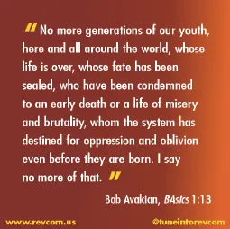 >Refuse Fascism has been described as having "ties" with or "linked to" the RCP.[3][4] Spokespeople for Refuse Fascism include Sunsara Taylor[1][5] and Carl Dix.[6][3][4] The group partially operates out of the RCP's Revolution bookshop on 132nd Street in Harlem[5] and shares a mailing address on West Broadway with The World Can't Wait.[7]