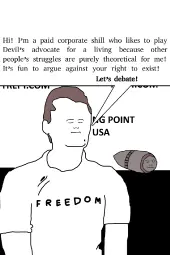 >>2537638>>2537870The text and image is hilarious, but it would probably go better as a 4-panel comic, with the last panel being that art and "Let's debate!"