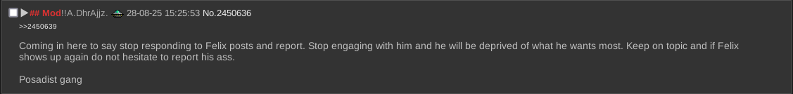 >>2518022>>2518002probably not felix. Felix probably left this site once he got doxxed.