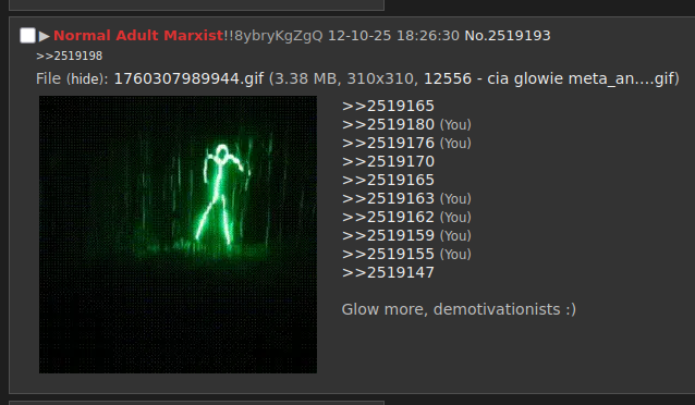 >They are not imperialismpilledirrelevant but also you are again just making up a fake normie in your head to appease with centrist rhetoric.