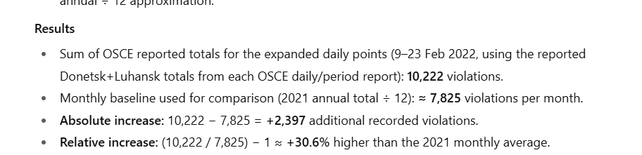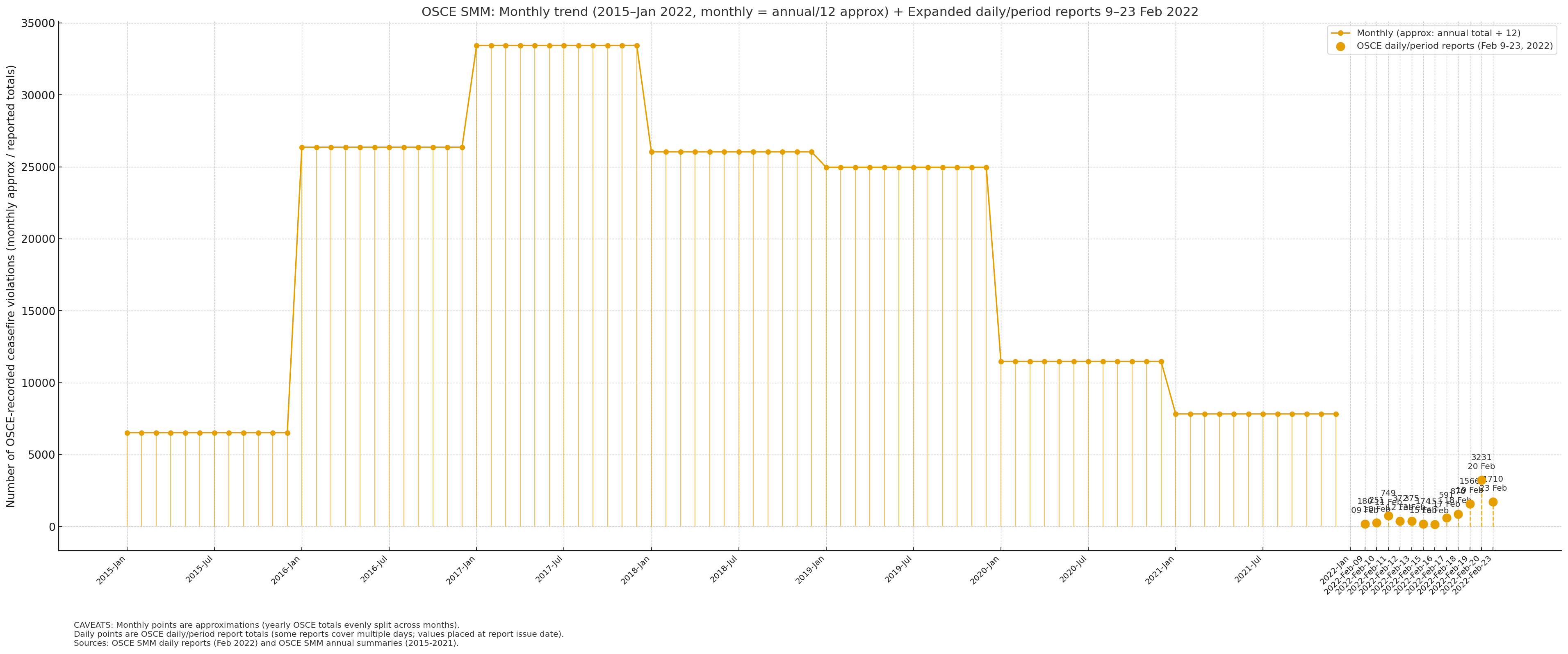 >>2518473>January 01 2022now do OSCE Minsk II reported violations from mid January to last days of February 2022, chart it with the 2014 to 12//31/2021 violations.