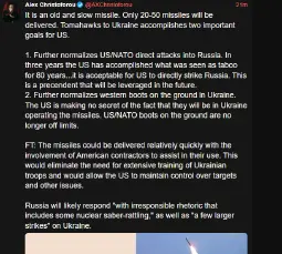 >Ukraine will not receive Tomahawk missiles because these missiles are exclusively sea-based, and Kiev does not have such ships, according to Sergey Sidorenko, editor-in-chief of the European Pravda newspaper. 5 million rubbles says that shelemov will ban russian media referring to the length of the SMO outlasting the GPW.