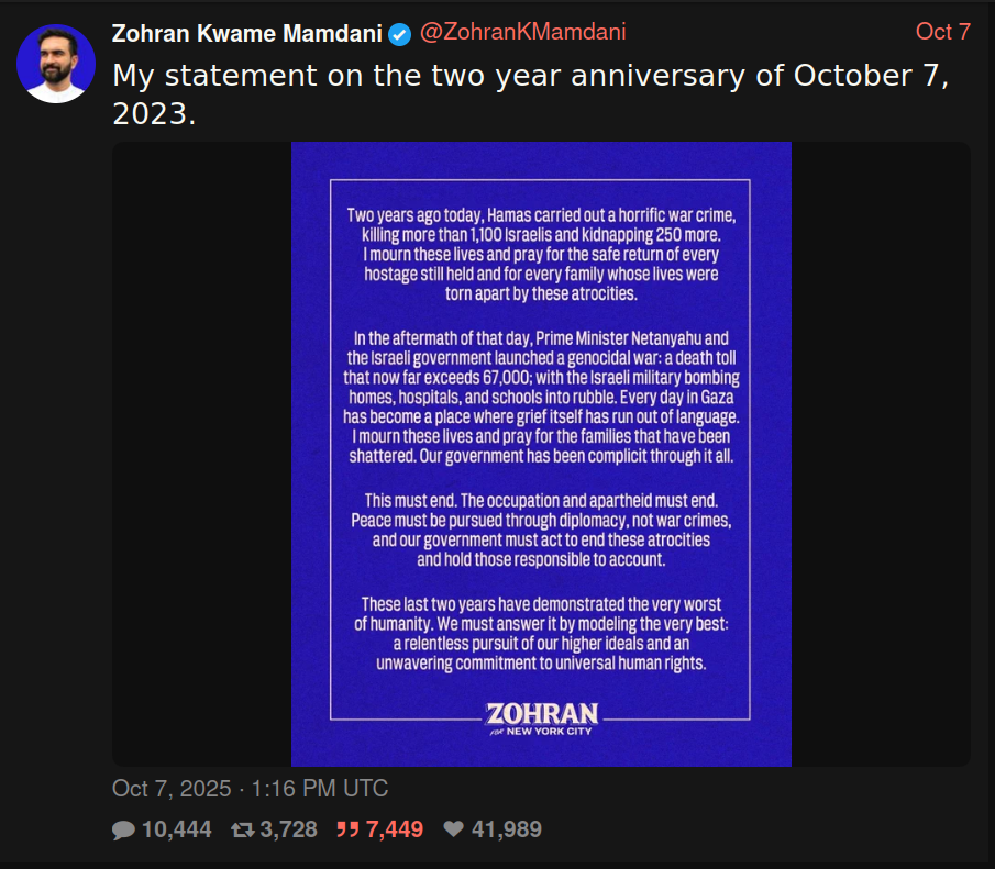 https://xcancel.com/ZohranKMamdani/status/1975550702056538512#mHe is