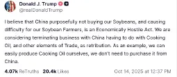 >>2521376Still not beating the soy right allegations. Genuinely starting to believe someone in the CPC understood the meme implications of making Trump constantly seethe about soybeans.