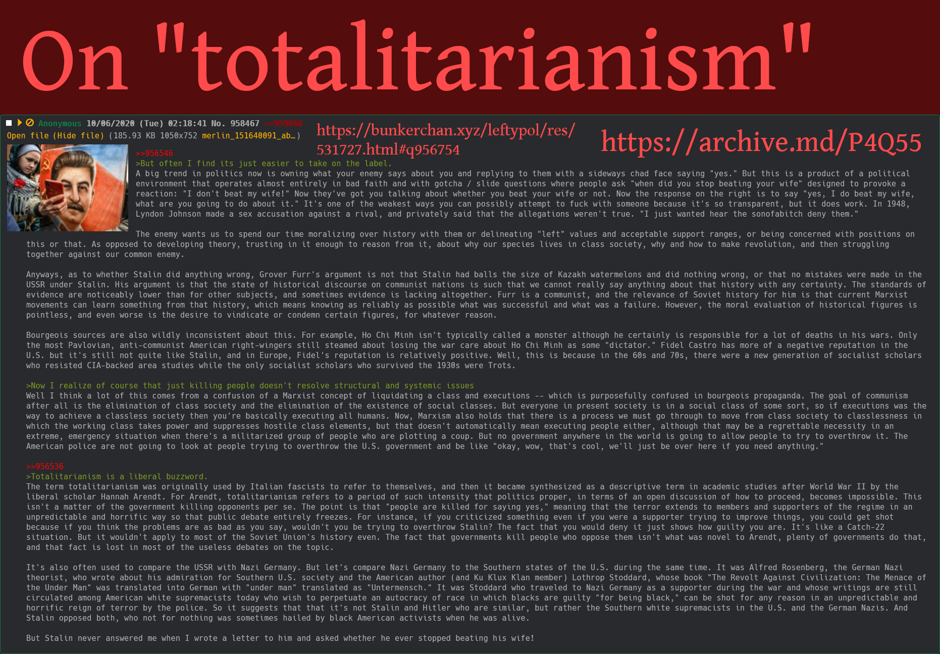 >>2527996Half of these "people" are either of a petty bourgeois background or financially incentivized to propagate this revisionist obfuscation online, just reminding you.