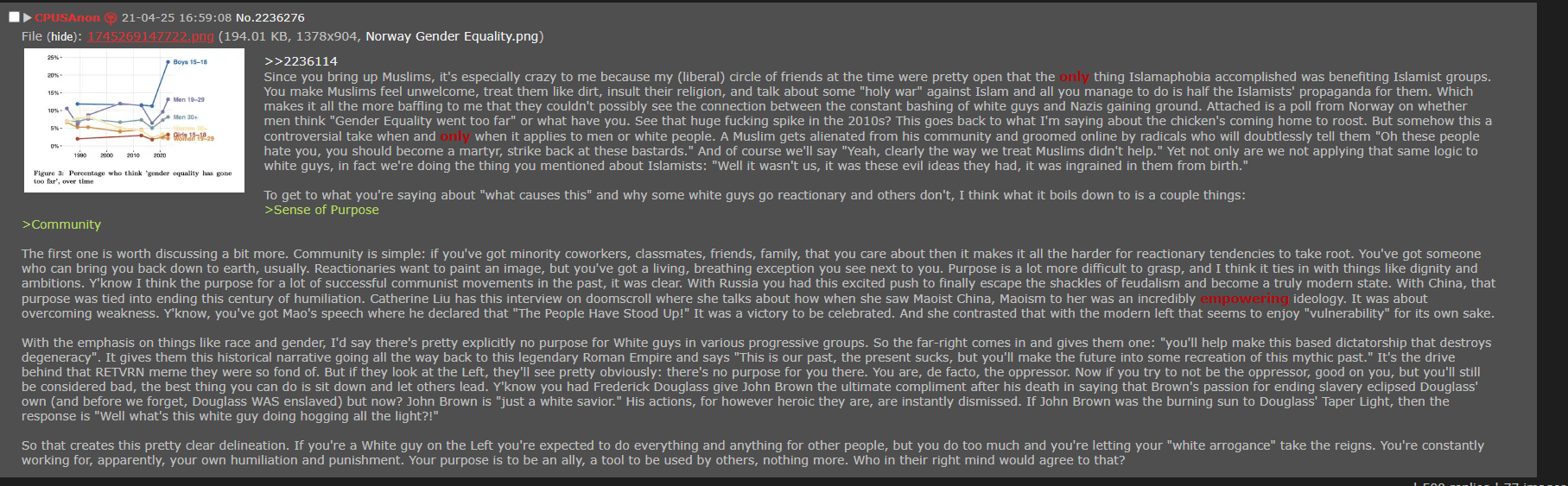 >>2527833Yeah it’s kind of a damned if you do, damned if you don’t situation. The Left out here is pretty weak and unable to really flex power, which means that the Left in the global south is at the mercy of imperialism. Sorry mang, but if there’s one light at the end of the tunnel for y’all, I think people here are strained enough that there’ll probably be some kind of collapse that hopefully gives you guys some breathing room.