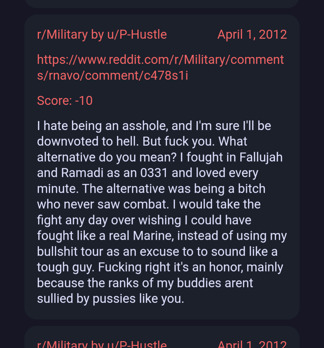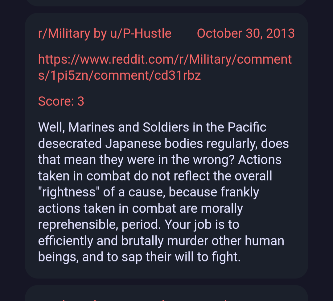 >>2531783>>2532022Adult hood is realizing that our boy hemmingway is still less cringe that people who didn't just play pretend and took that shit seriously enough to kill people over spooks.
