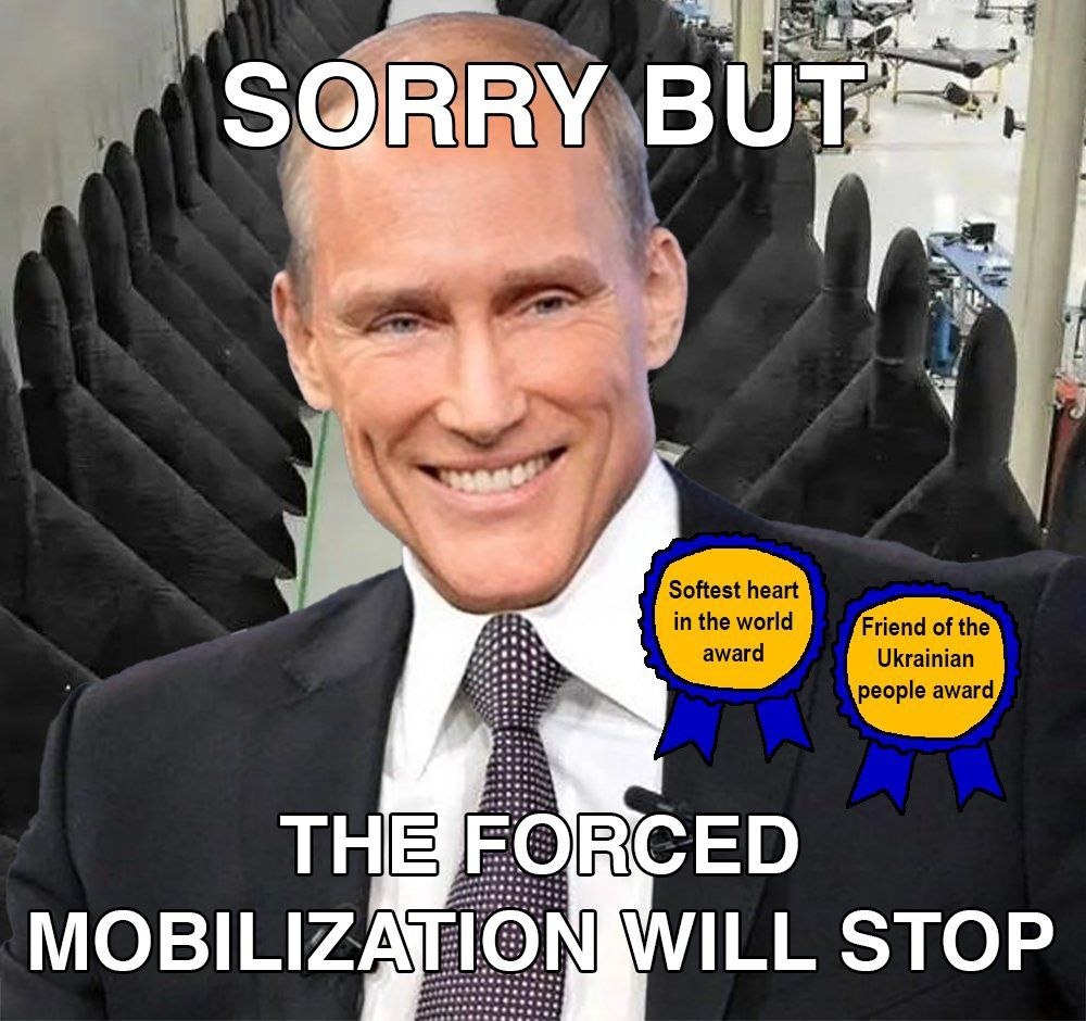 The actual moral atrocity is that the West isn't interested in going balls to the wall, that it's not interested in Ukraine actually winning, just having Ukrainians get drafted and turned into cannon fodder to bleed the Russians.