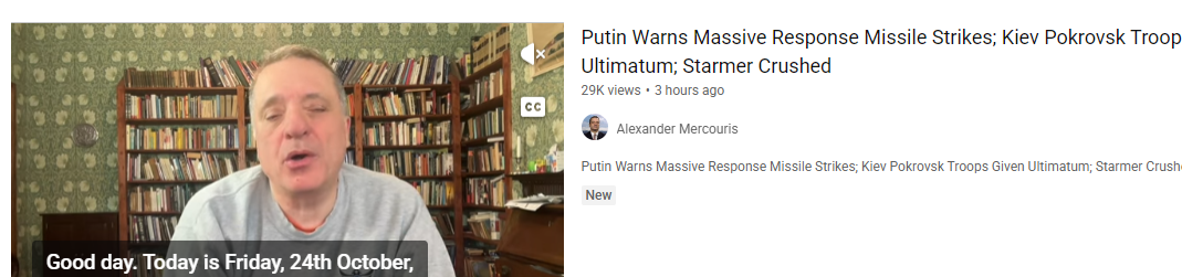 >>2540509Gilbert Doctorow has been sitting around in St. Petersburg calling Putin a coward whose restraint is inviting the very WWIII he's trying to avoid. He says that Putin is becoming increasingly isolated, noting a wave of criticism on Russian TV and incidents like Deputy FM Ryabkov saying diplomacy with the US has been exhausted (only for Putin and Peskov to contradict him and insist that diplomacy with Donny is still open).