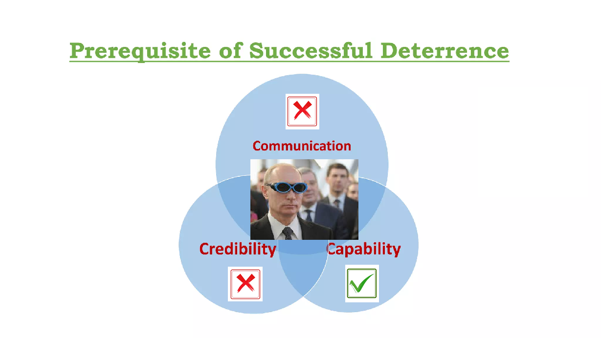 If Russia has lost deterrence (which can be debated because NATO isn't exactly doing mass strikes on Moscow), it's because of the perception that a country unwilling to respond proportionately to conventional attacks is unlikely going to use some first-strike nuclear attack.
