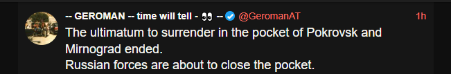>>2532776Actually, the nafoids are mad about the imminent loss of Pokrovsk, but I struggle to celebrate such underachiever gains myself. Maybe Tank was right all along and that it's pathologically unhealthy to pin one's hopes on a Yeltsinite lib.