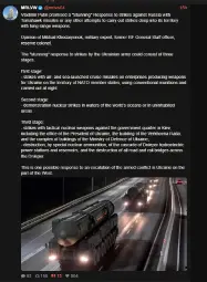 They could strike British or French military or economic assets in Poland or the Baltics, but that would be treated as an attack against the latter as well as the former, so that's now multiple countries doing the Article 5 thing which likely won't lead to much to begin with but if Poland or (lol) the Baltics decide they're going to use that as an excuse to openly start fighting in Ukraine, then the situation can escalate into full blown conflict as Poland and the Balts start suffering more than they thought under Britain and France's protection, their neighbours start panicking that significant damage to Poland/Balts without nuclear retaliation means they're also now at risk, etc. It's just a sad reality that Russia is one decision making centre that Russia can control, while NATO is a conglomerate of 32 decision making centres nebulously dedicated to assisting whatever decisions each other have made.