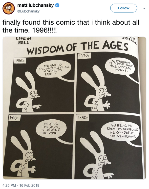 but in the long term, that good cop or carrot behavior has enabled so much bullshit from the bad cop and the stick, and the good cop has moved so much to the bad cop or stick behavior that eventually there'll be little difference.