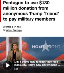 A private person and “Trump ally” is providing 130 million dollars to cover military wages during the shut down.