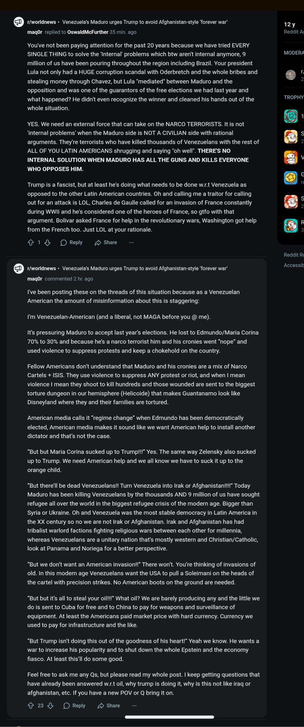 Yeah, hearing Maduro sing John Lennon's Imagine has made me support Trump. We need less Reddit Occupied countries.