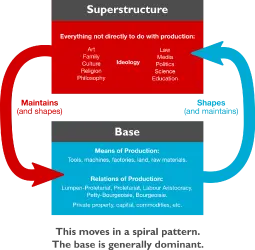 As for your statement of moving forward in time, there is a Marxist concept, borrowed from Hegel, called "Aufhebung" (which is translated as "abolish" in most texts) which can be very roughly described as the old showing itself in the new, just in a higher form. It has a dual meaning of abolishing but also preserving, like the proletariat abolishing capital but preserving the means of production.