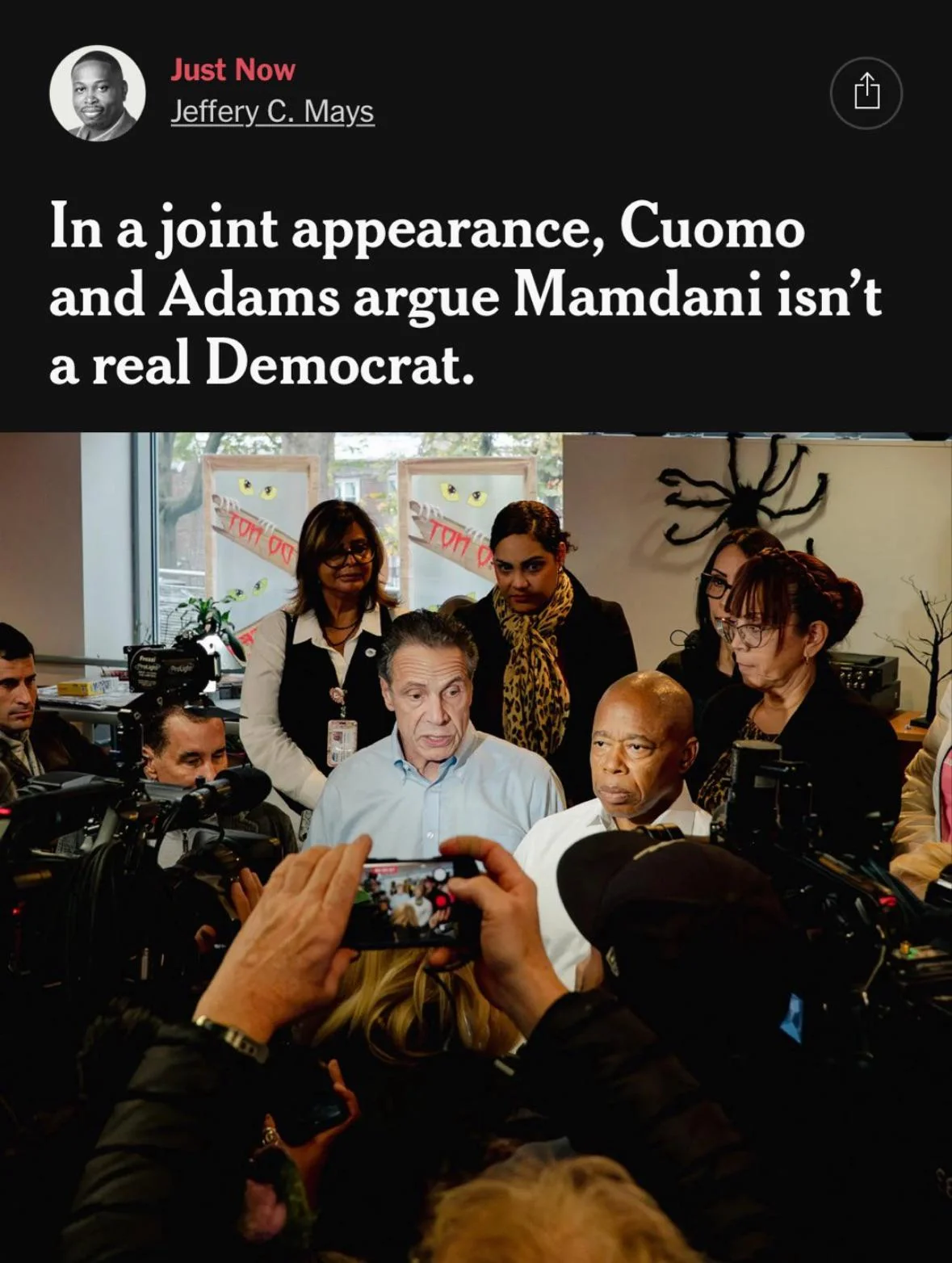 One big cultural change when it comes to politics is how national even small elections used to be, ads for Zohran wound up in other countries, an mayoral election for a single city, and now the nation is plugged into the small local election of Platners. The political calculus for politicians has changed, it's no longer enough to please the constituency of the voters able to vote for you but now the attention of the whole nation is on you and you have to take their considerations and sensibilities into account. it's just different now