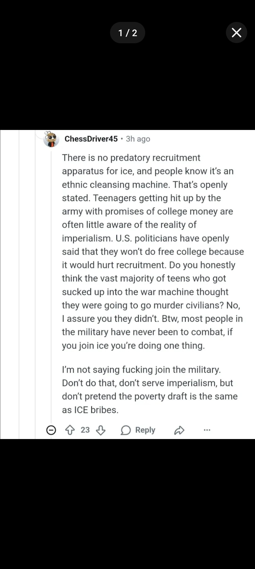>>2540666Honestly if he went and learned up after five stints of murder he's genuinely even worse because he's still 110% pro military and pro murder.