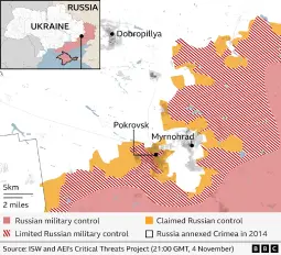 In reality maps like these are bs. If there are Russian soldiers in the striped, yellow or red areas, it means everything between that and the rest of the map (in the area depicted) should also be in the "gray zone" owing to FPV drone and artillery range. Which also means that if the colored area represents Russian troop presence Mirnograd is effectively encircled. Ergo the UAF fucked up.