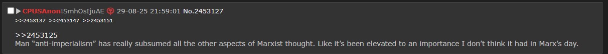 >>2544523The thing with Leninism and it's posterior evolution into "Marxism-Leninism/Stalinism" is that it really only made sense as a strategy in early 20th century Russia where the Bolsheviks had to deal with: