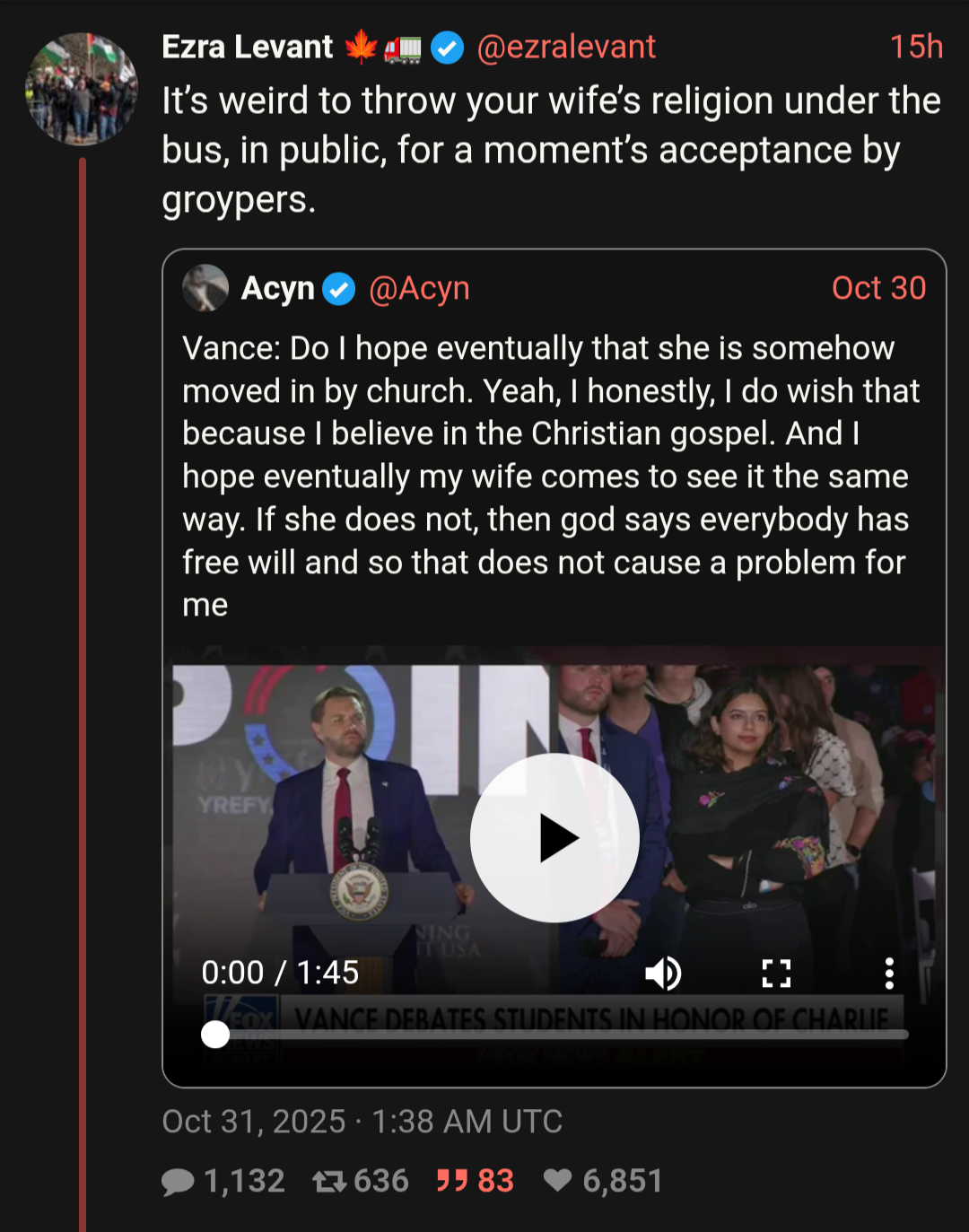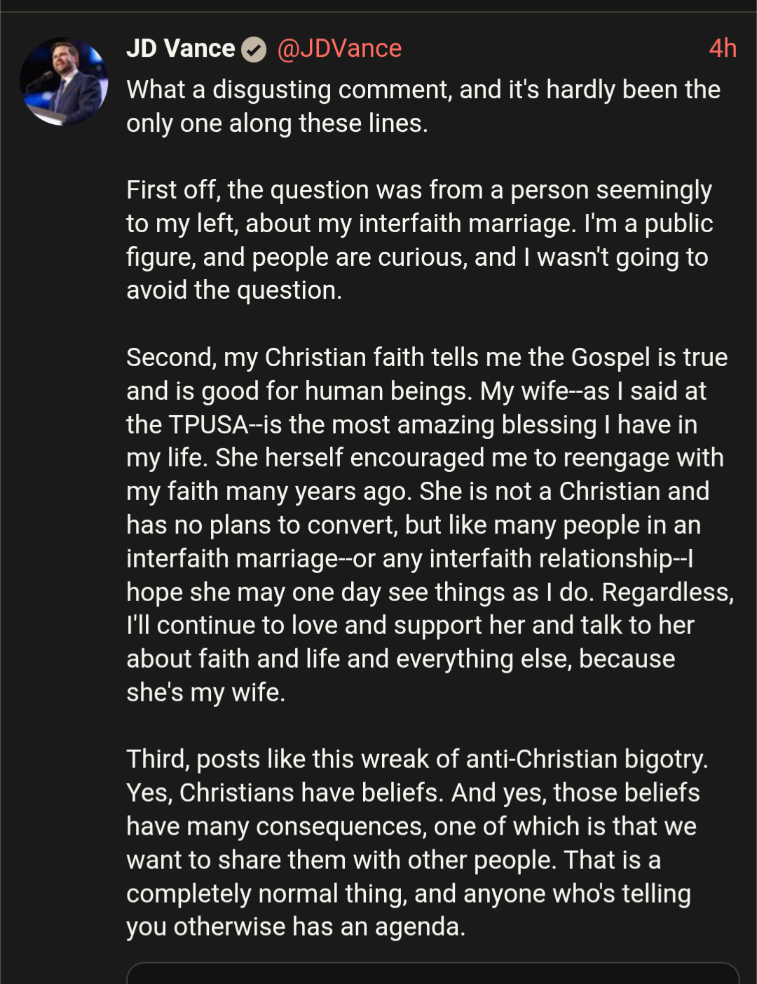 >>2543613JD Vance is going to atone for his betrayal of the Aryan race by marrying Mrs Kirk