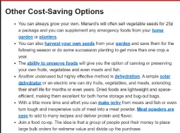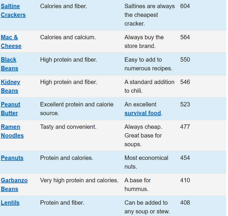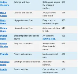 Thinking peanut butter, oatmeal maybe, beans, maybe some canned fish.