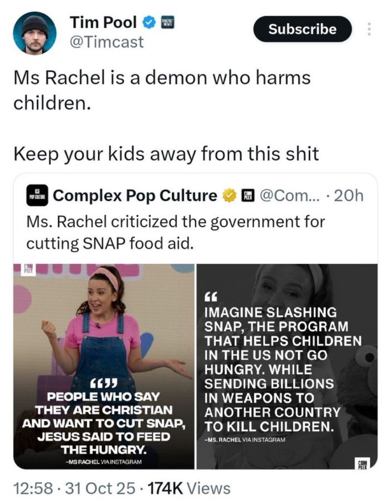 >>2544843I’m kind of ashamed to admit it but I’ve often thought of ironic punishments as a form of penance for these right wing grifters. Like instead of just straight up Gulags, force Tim Pool to work a real job with a wage in this constructed factory town. Then pay him just enough that he has to go one or two days without food, and when he complains he’s hungry, just show him this tweet.