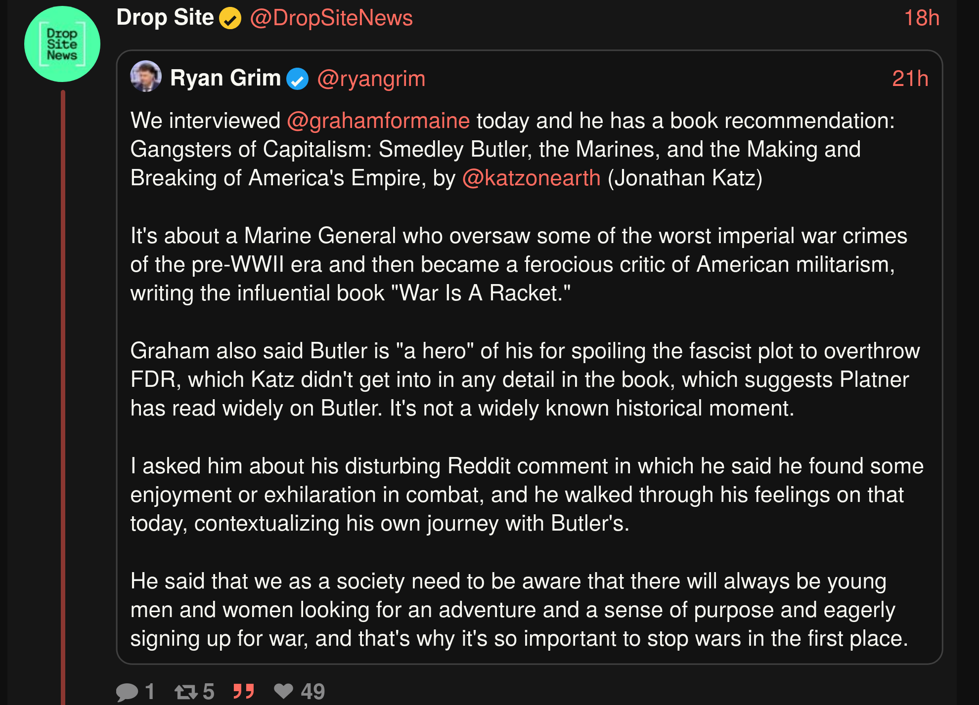 >>2545600This is a big reason why, even though I understand why he did it, walking back his desires to defund the police is a big red flag (bazinga) against Zohran. Police in the USA are way too big of a sacred cow. Just like the State, the entire institution is rotten and must be destroyed and a new one built from the ground up.