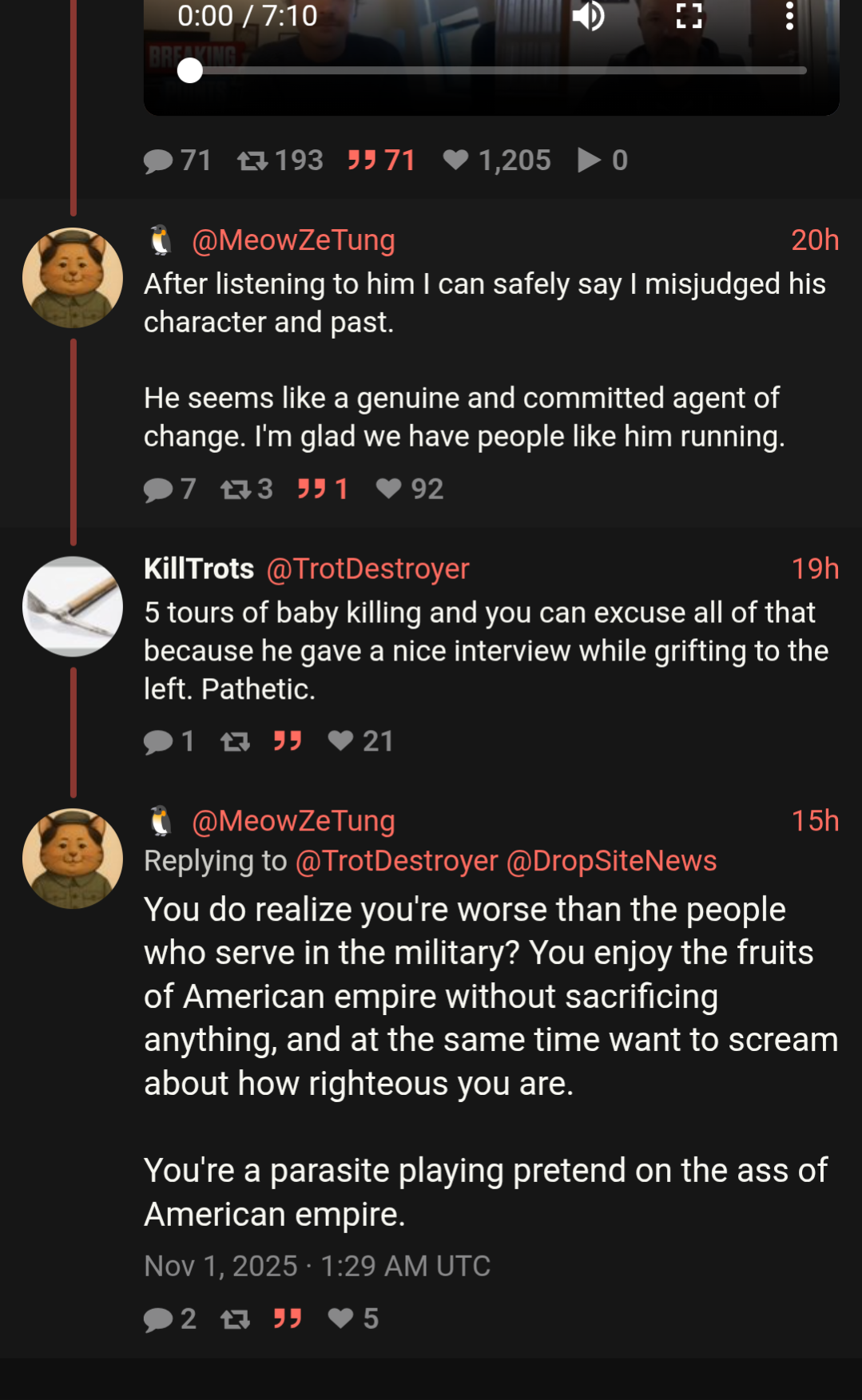 >>2545724mainly, I think he's calling nick fuentes nazi, but the argument stretches to Iran, too.