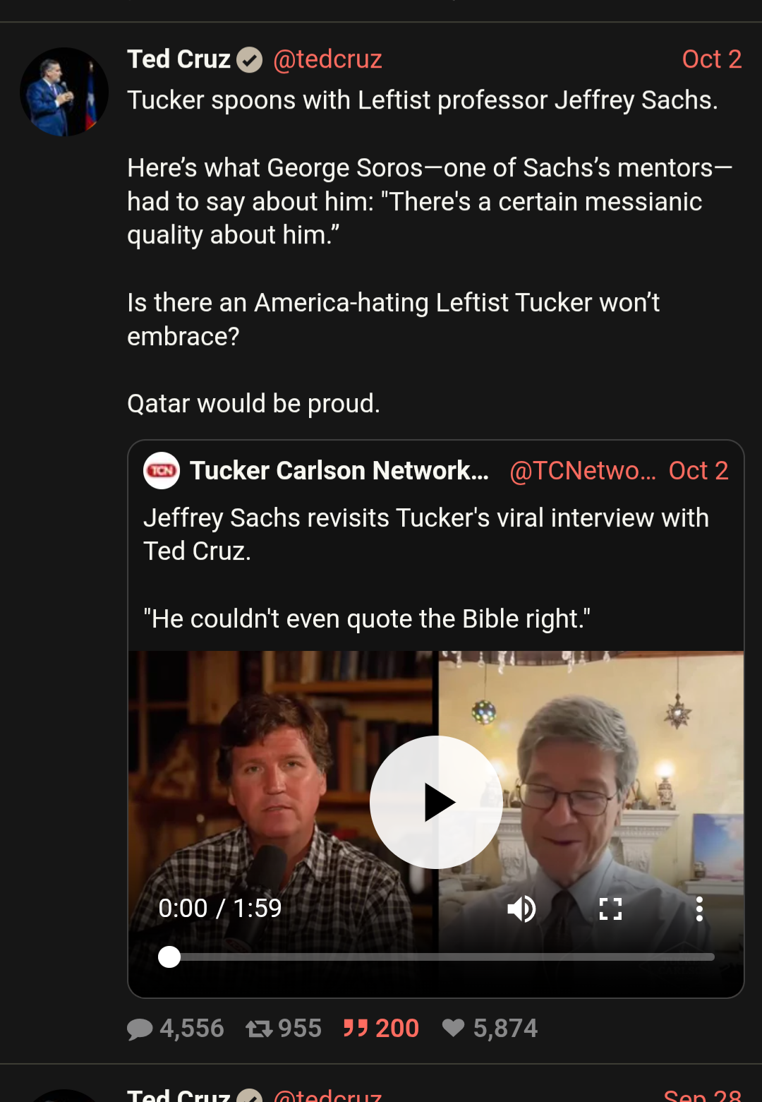 >>2545731He’s apparently so personally despised by his wife, family, and colleagues that some old Dem senator joked: “I must like Ted Cruz more than anyone, and I hate Ted Cruz.”