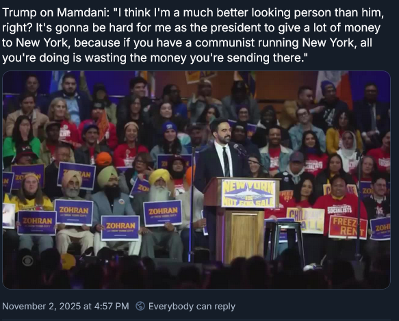 >>2547407Looks like they've realized the hysterical shrieking about how Mandani will redistribute every Jewish person's toothbrush isn't working out. Now comes the efforts to co-opt and absorb him into the Democratic blob.