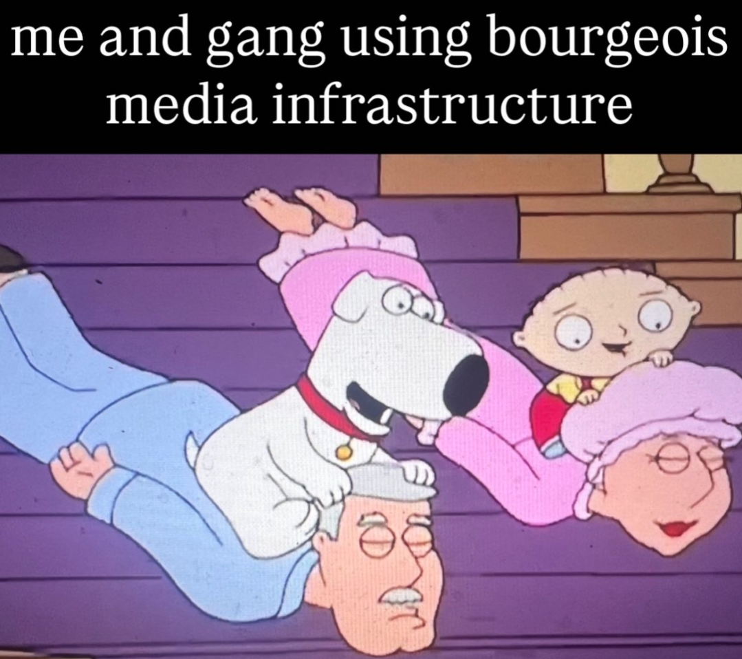 >>2547561America only has revolutionary potential if the media can be eliminated or discredited in some way. They simply have too much influence in shaping the narrative in favor of Capital, and the public are too trusting to reject their narrative.