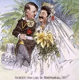 if you blame joining the war in 1939 after the "hitler-stalin pact", what is the ideal reaction? after germany occupied france, what was supposed to be the reaction? after the blitz? as i say, some pragmatic defeat to hitler could have been possible without the idiotic operation barbarossa, which also concluded with america's entrance into the war via pearl harbour (december, 1941). everything turned around in 1942 with the establishment of the allies against the incompetent and hubristic axis. hitler lost the war on his own terms. it was a battle of hitler against himself.