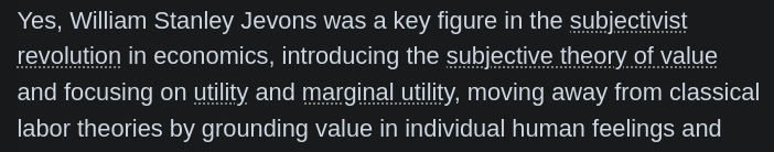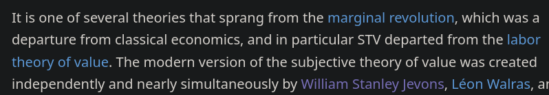 >>2494847dated (25-09-25), or just over 3 months ago. i provide a comprehensive review, and really become invested in his sections on the LTV and his theory of wages. its here that i see the validity of his work. i then attempt to show jevons' continuity with the classical school; all fallen on deaf ears. i then keep writing about the theory of marginal utility, which has never ceased. my review of jevons is presented in 4 parts: